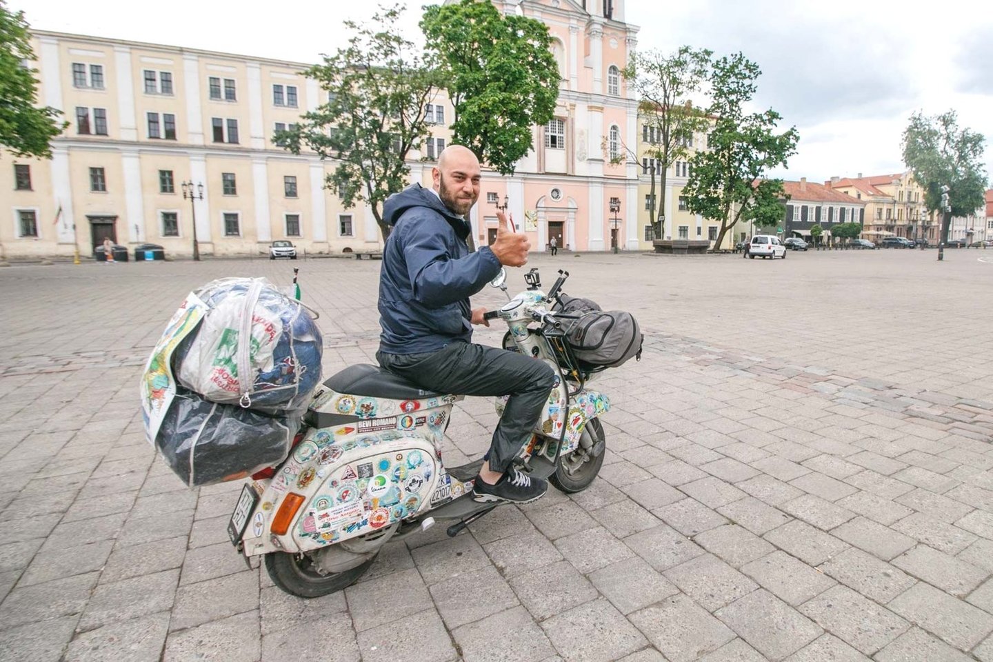 Kaunas – vienas iš jo dabartinės 18 000 kilometrų kelionės motoroleriu aplink Europą taškų. Gegužės 10-ąją pradėjęs nuotykį Andrea jau aplankė Albaniją, Bulgariją, Rumuniją, vėliau patraukė į Ukrainą, Lenkiją, o iš ten pasuko į Baltijos šalis.