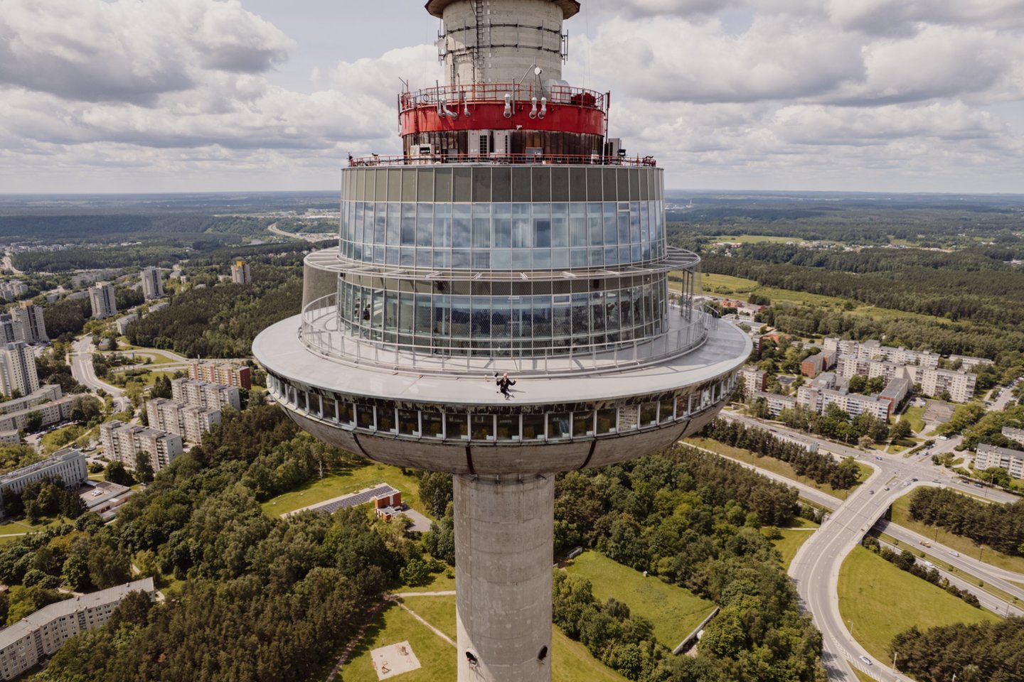 „Teko įsliūkinti naktį, kai visi miega ir niekas nemato...“ – juokauja Tomas, kurio darbo stalu laikinai tapo stalelis 68 bokšto aukšte.