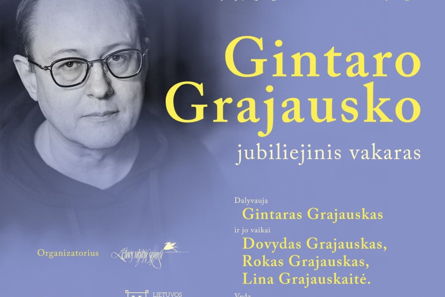 Vasario 17 d., antradienį, 18 val. Didžiojoje salėje vyks rašytojo Gintaro Grajausko jubiliejinis kūrybos vakaras. Gintaras Grajauskas įvertintas 2025 m. Lietuvos nacionaline kultūros ir meno premija už poetinį šiuolaikinio buvimo pjūvį. Drauge su Gintaru Grajausku dalyvaus jo vaikai Lina Grajauskaitė, poetas, vertėjas, perkusininkas Dovydas Grajauskas ir muzikantas, reperis Rokas Grajauskas. Renginį ves rašytojas Mindaugas Nastaravičius.