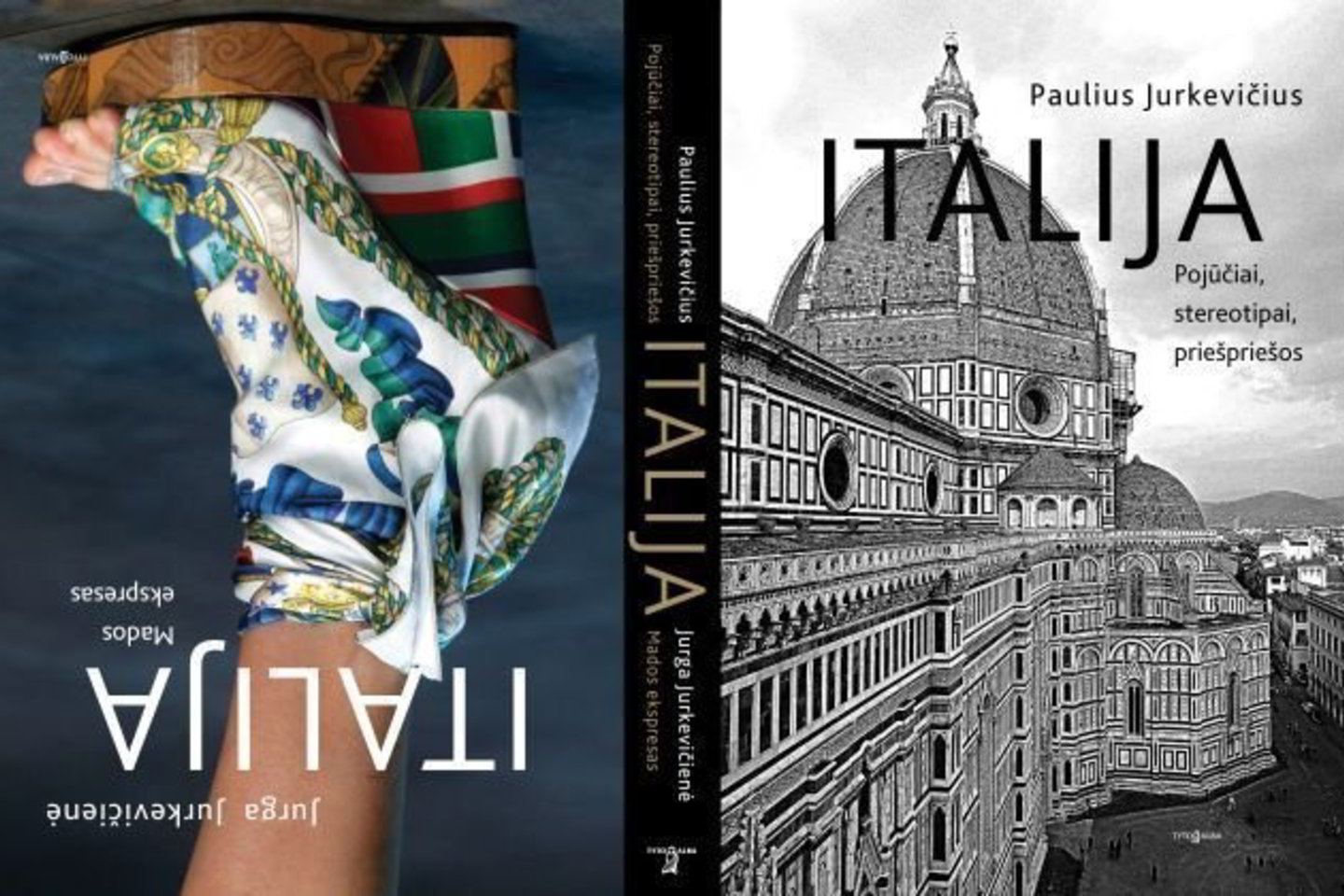 Paulius: Tai dvi visiškai skirtingos ir savarankiškos knygos. Mano nespalvota, Jurgos knygoje—spalvų fontanas. Tiesa, spalvų yra ir pas mane, bet jos išdėstytos tekstu, žodžiais, įspūdžiais. Mano “Italija” labiau literatūriška, Jurgos—labiau žurnalistinė, reportažiška. Bet, manau, kad abi knygas jungia viena tema—Italija. Neįmanoma pasakoti apie šią šalį, aptarti jos architektūrą, istoriją ar gastronomiją ir nutylėti madą, dizainą.