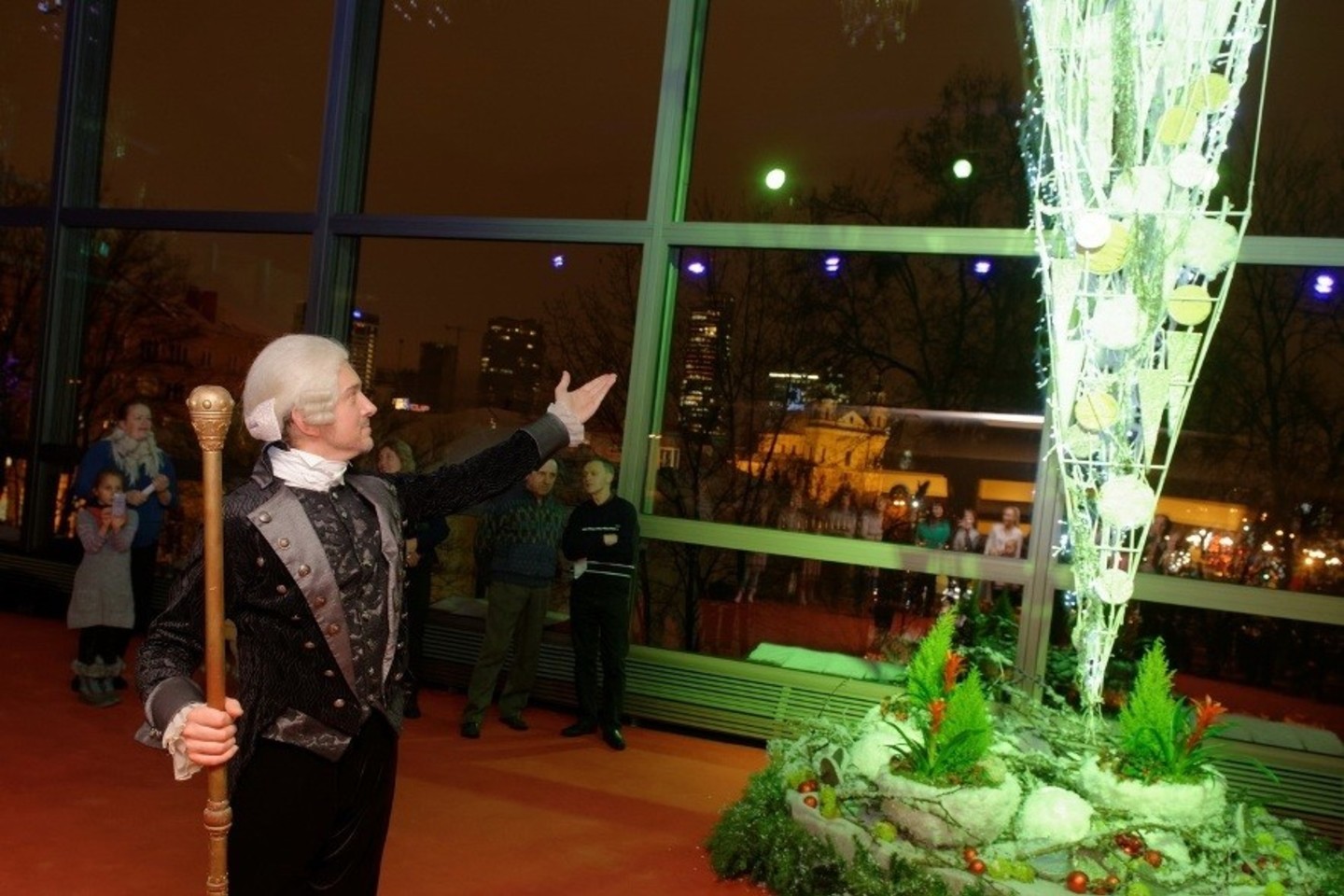 Likus pusvalandžiui iki spektaklio pradžios, LNOBT Raudonojoje fojė Kalėdų eglę įžiebė burtininkas Droselmajeris – vienas svarbiausių „Spragtuko“ veikėjų, išlaisvinęs eglutę nuo puolančių peliukų.