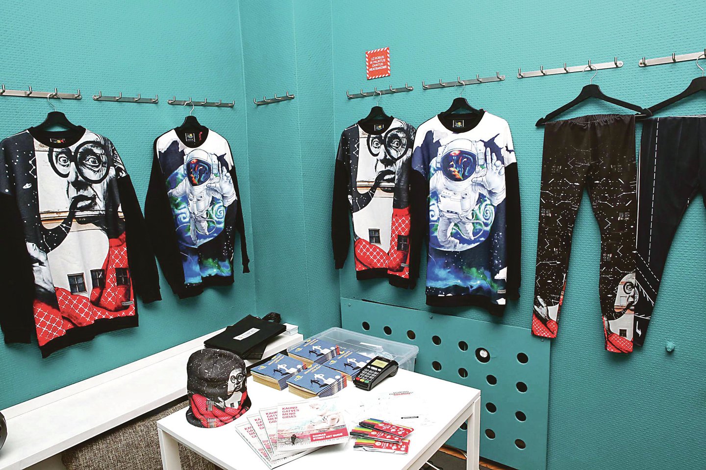 Ant drabužių galima išvysti įvairiose Kauno erdvėse ant pastatų nupieštus „Rožinį dramblį“, „Tikslo link“, „Be pavadinimo“.