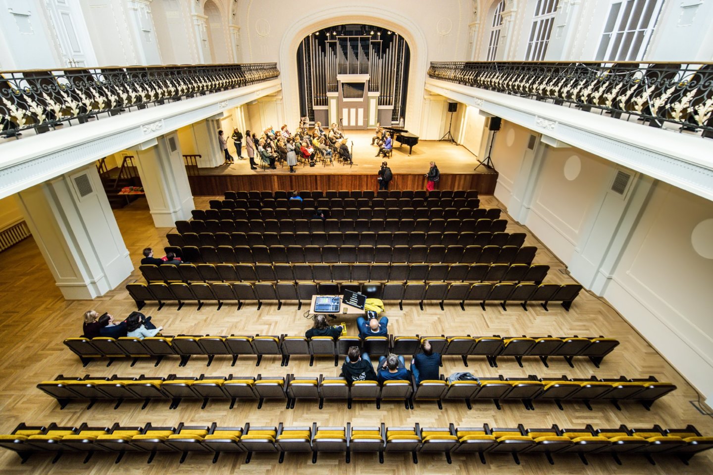 Šiek tiek yra padidėję praėjimai, balkone grąžintas centrinis praėjimas, nes reikėjo paisyti labai sugriežtėjusių priešgaisrinių reikalavimų. Šios rekonstrukcijos siekiamybė ir buvo klausytojų ir Nacionalinio simfoninio orkestro komfortas. Didžioji salė kasdien yra šimto muzikantų darbovietė ir ji turi būti kuo patogesnė.