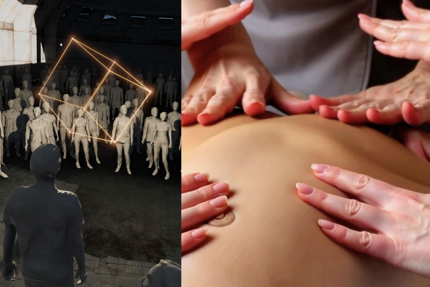 Igno Pavliukevičiaus „Uncanny Haptics“ (liet. „Neįprasta lytėjimo patirtis“) pakvies atsisėsti į realią masažo kėdę ir ekranuose stebėti, kaip jus masažuoja dirbtinis intelektas. Ir ta kėdė – iš tiesų įspūdinga, mes suradome gal net vienintelę tokią Lietuvoje. Ji labiau primena ne kėdę, o lėktuvą ar kosminį laivą. Tikiuosi, kad lankytojams bus iš tiesų smagu.