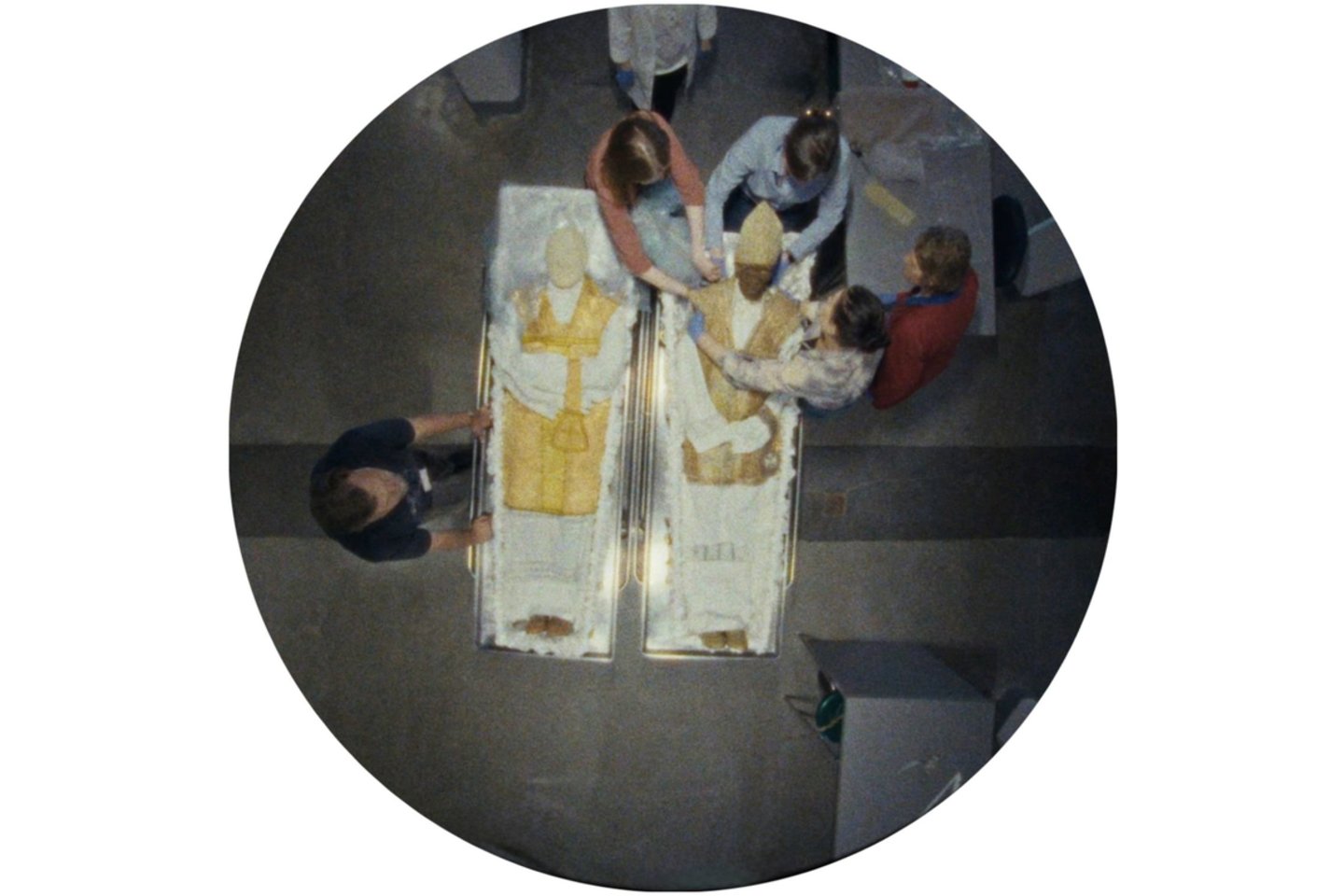 Filme restauruojami ir mumifikuoti vyskupų Simono ir Juozapo Giedraičių palaikai. Žiūrovai išvys, kaip nuo jų paimama mikrobioma, siekiant išsiaiškinti, kokios grybinės kultūros juos pažeidė, o vėliau ir restauracijos procesą – kaip kaulai sudėliojami, kūnai perrengiami naujais specialiais pasiūtais drabužiais, batais, transportuojami ir grąžinami į palaidojimo vietą Varnių bažnyčioje. Šis filmavimas truko apie vienerius metus.