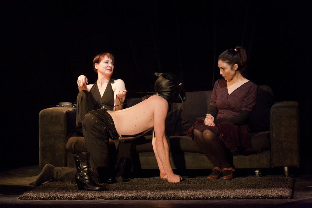 Tamsioje scenoje blausi šviesa staiga akinančiai įsižiebia, minimalistinė scenografija mus panardina į slogią atmosferą, kurią retsykiais perskrodžia beprotybės blyksniai. Žiūrovas atsiduria tai sapnų, tai tikrovės pasaulyje.