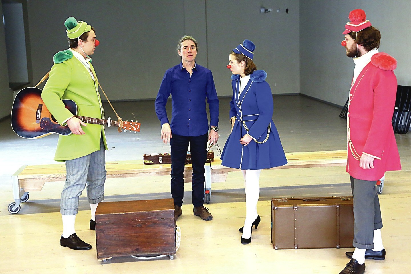 – „Keliaujantis klounų orkestras“ vaidinamas daugiausia 9 vaikams ir būtinai jiems įprastoje aplinkoje, taip pat be liudininkų. Belieka paklausti, kas ir kaip vaidinama?