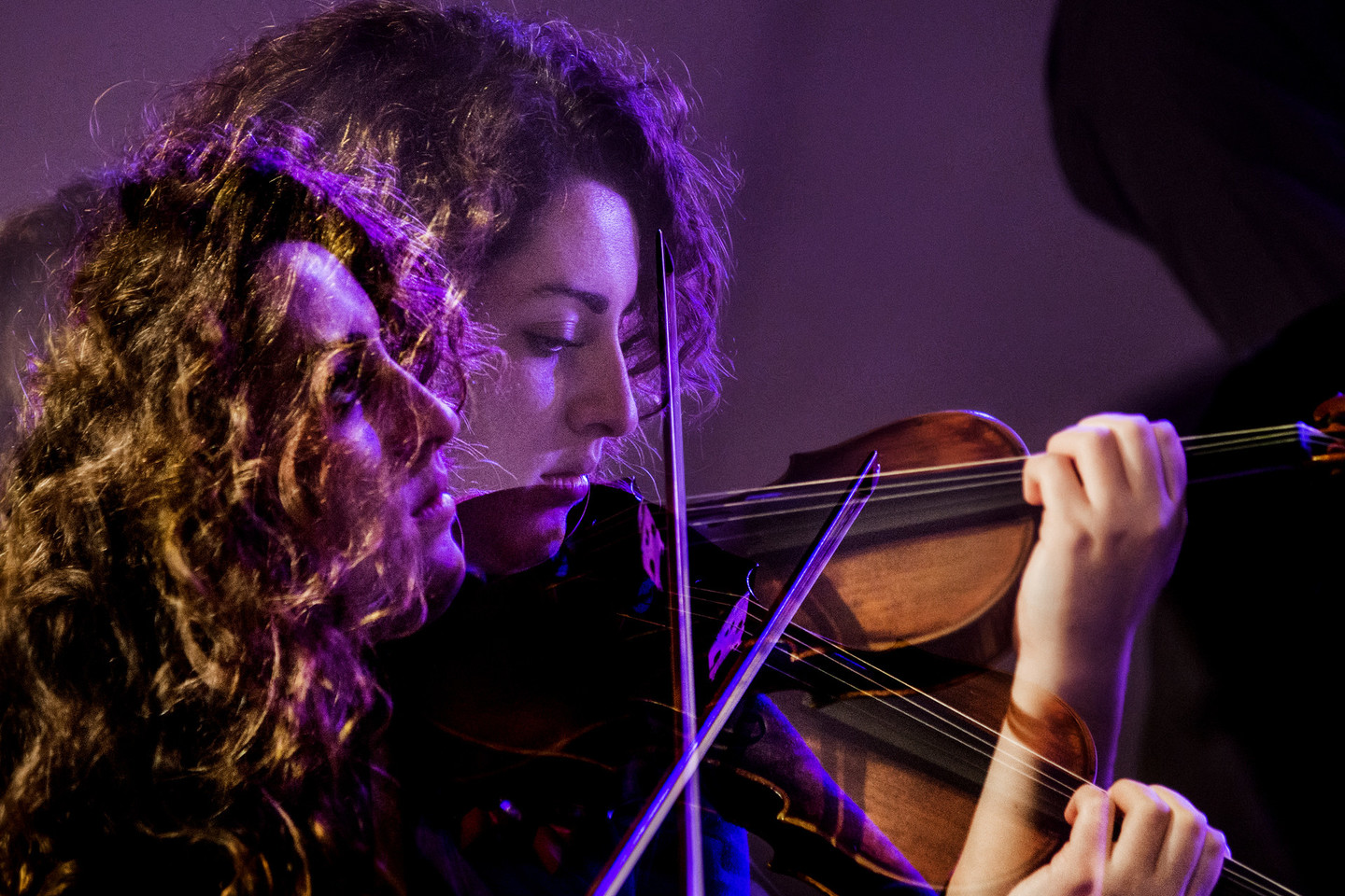 Michaelo Gordono „Light is calling“ smuikui ir kompiuteriui raudonos šviesos apsuptyje: siūbuojantis sintezatorių ritmas palydi atonalaus atspalvio postromantinę smuiko melodiją. Elektroninės perkusijos pusiau žingsniai gilūs ir minkšti, lyg nukritusi lapija. Kompiuteris ir žmogus. Abu solistai atlieka dvi skirtingas temas unisonu, susiliejančias į vieną „kibernetinį“ kūrinį. Primena „gyvai sintezuojamus“ Gavino Bryarso opusus styginiams. Ši neaiški besiformuojanti melodija, lyg lašai ant stiklo, sukuria įmantrius ornamentus. Palaipsniui kompiuteris užvaldo kompozicijos struktūrą ir muzika nutyla.