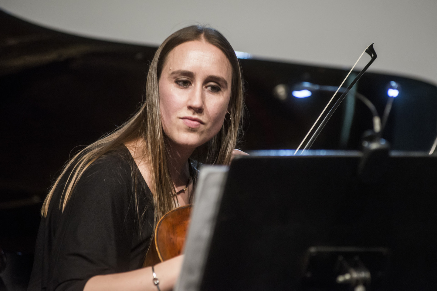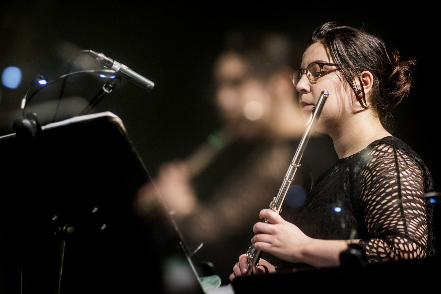 Programą atvėrė dinamiškas ir greitai besikeičiantis Sang Songo kūrinys „Quasi-Elegy“. Iš esmės tai – netriviali solfedžio pamoka su juvelyriniais smuiko ir kontraboso intarpais. Atonali fleitos įžanga – lyg slidinėjimas asfalto kalvomis. Balansuojanti ant disonanso ribos struktūra čia pat pereina į postromantinę styginių melodiją, kuri netrukus mutuoja į sinchroniškai traškančius girgždesius.