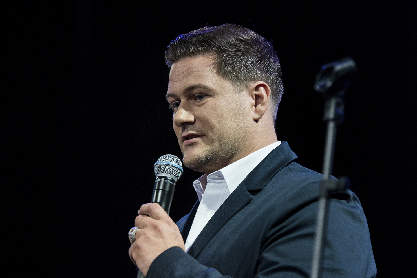 Į sceną paviestas operos solistas Merūnas Vitulskis pasidalino savo nuoširdžiomis emocijomis ir linkėjimu visai Lietuvai klasikinę muziką populiarinti šiuolaikinėmis priemonėmis.