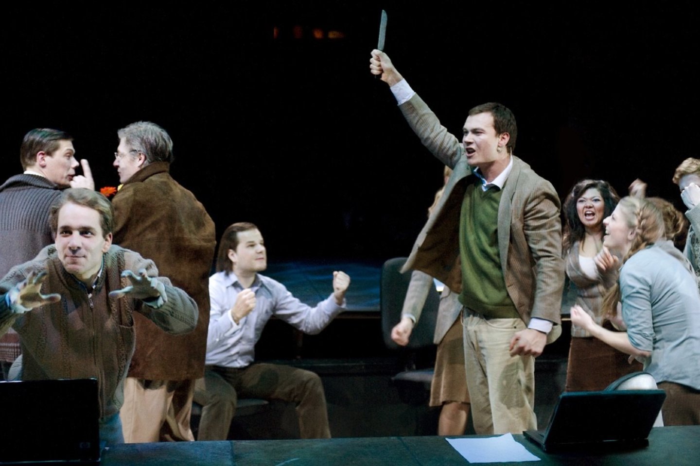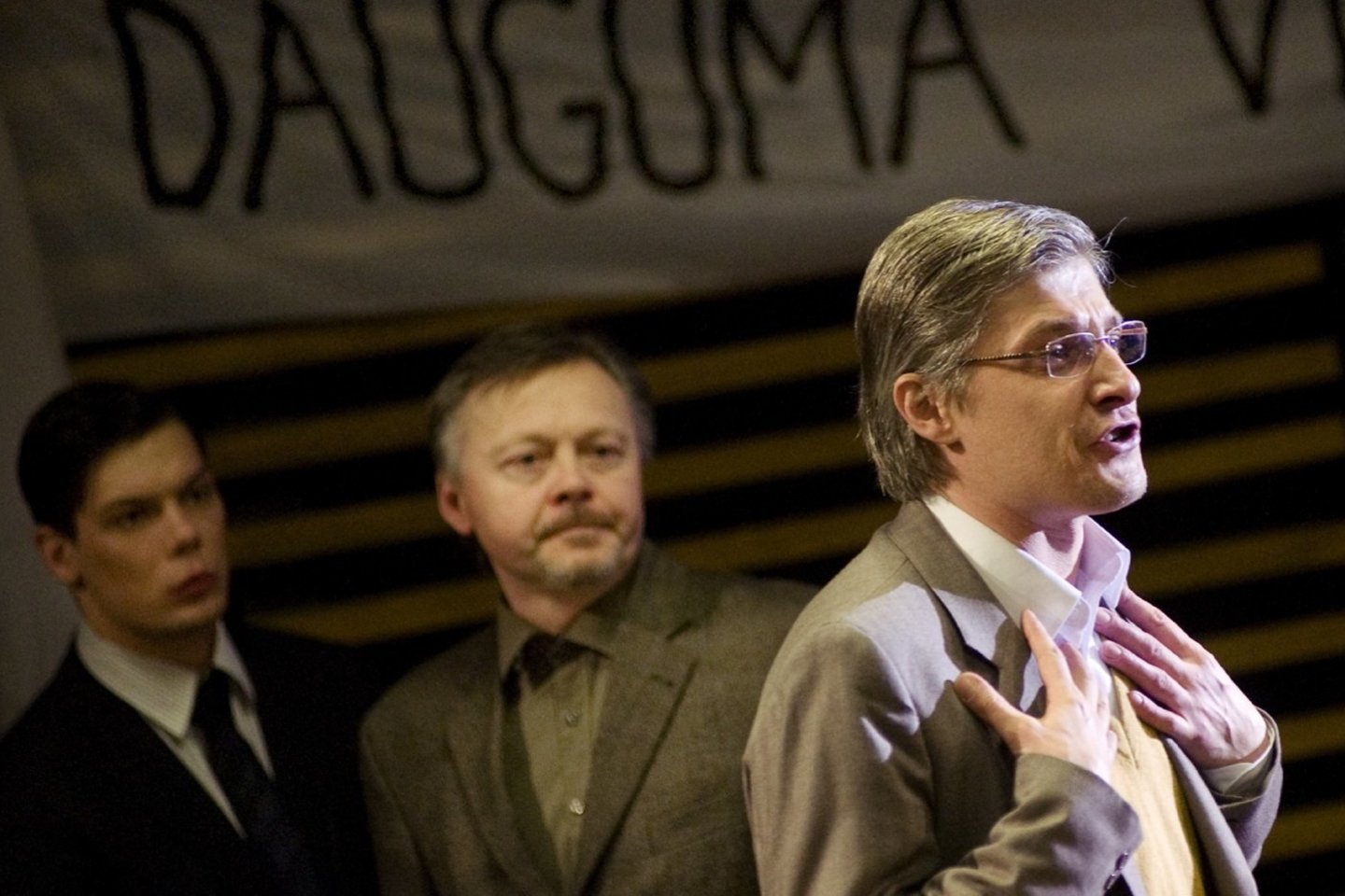 J.Vaitkus pakeičia pjesės pavadinimą – žodis „tauta“ šiuolaikinės politikos fone neteko savo prasmės. Antra vertus, režisierius ir scenografė J.Paulėkaitė draminei situacijai suteikia ne tik politinės ir visuomeninės, bet ir ekologinės katastrofos mastą, kuri persmelkia tiek vaizdinį spektaklio sprendimą, tiek atlikimą – scenografė norėjo, kad spektaklis peržengtų teatro ribas ir veiktų tiesiogiai, kad būtų aišku, jog viskas vyksta čia, dabar, su mumis ir iš tikrųjų.“