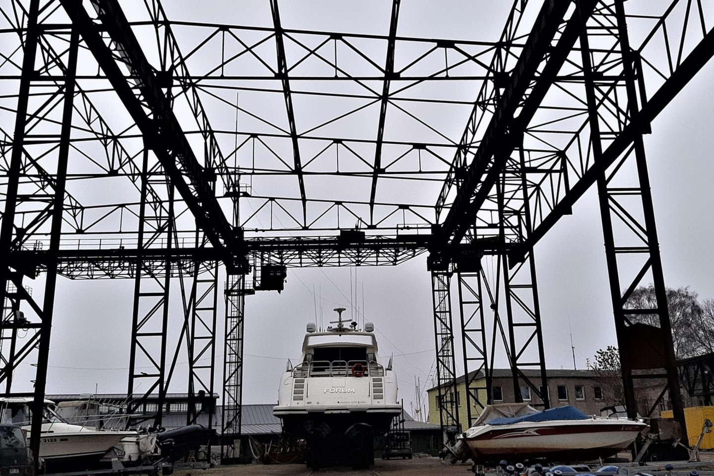 Maždaug šešių aukštų namui prilygstantis vokiško metalo konstrukcijų darinys šalia Kruizinių laivų terminalo užima nemenką uosto plotą, o ten kiekviena žemės pėda – aukso vertės. Pastaruoju metu apleistas ir beveik nenaudojams elingas stogu neuždengtas.