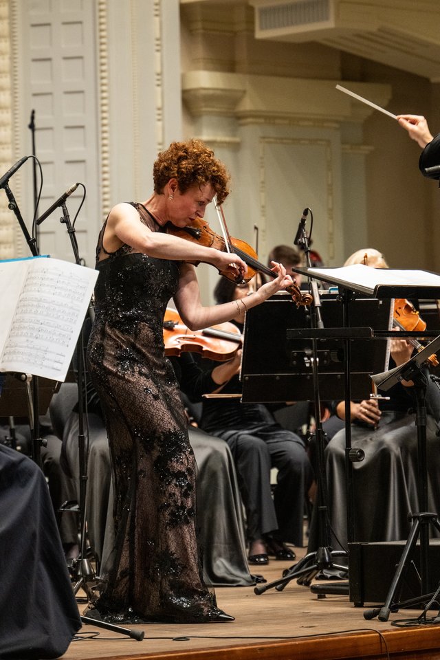 A. Hillborgo Antrojo koncerto smuikui (2016) premjerą Stokholme atliko Lisa Batiashvili, kuriai kūrinys ir dedikuotas. Vilniuje nekantriai laukėme pirmąsyk atvykstančios smuikininkės Carolinos Widmann, universalios atlikėjos, puikiai atliekančios ir klasiką, ir šiuolaikinę muziką. Lūkesčiai pasiteisino su kaupu, A. Hillborgo muziką ji perteikė taip įtikinamai ir pagaviai, tarsi pati būtų ją sukūrusi. Po nedidelės orkestro įžangos, kurioje girdime tylius styginių flažoletus, žemyn nuslinkusį glissando ir tylų styginių akordą, suklūstame išgirdę solistės eksponuojamą laužytą d-moll akordą. Tai kompozitoriaus minimas aidas iš Bacho Sarabandos d– moll (tai Partitos Nr. 2 smuikui solo trečioji dalis). Po šios solinės įžangos seka emocinga kadencija ir staigus tempo pokytis. Tarsi ugningas bėgimas kaitaliojasi détaché štrichu atliekamos greitos smulkios natos, paskui – ilgas lėtas intensyvaus garso judėjimas, palaikomas orkestro akordų. Visa tai C. Widmann grojo nepaprastai intensyviu garsu, kreipdama muzikos vyksmą prasminga linkme. Laikas nuo laiko suskamba bachiškas d-moll motyvas, paskirų instrumentų, ypač pučiamųjų raiškios replikos... Puikiai atliekama smuiko solinė kadencija, po kurios energija pulsuojantis veržlus epizodas veda link pabaigos. Išgirdome įspūdingą interpretaciją, kurioje atlikėjos intelektas ir grojimo meistriškumas tobulai susilydė. Po audringų plojimų C. Widmann pagrojo Eugene Ysaye Antrosios sonatos a-moll ketvirtą dalį „Les Furies“.