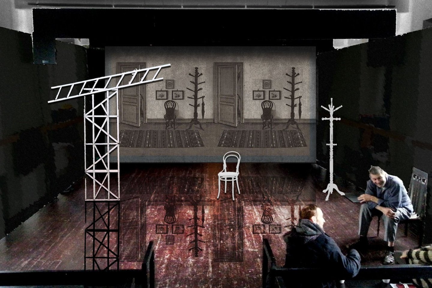 Marius Nekrošius („Bado meistro“ scenografijos autorius): Labai džiaugiausi sužinojęs, kad Tėvas „Meno forte“ ketina sukurti nedidelį spektaklį – pasirodo Tėvas moka padaryti ir mažiau nei dviejų valandų trukmės pastatymą. Juk beveik visą laiką jis imdavosi galingų, epinių kūrinių. O čia – toks mažas mažas Kafkos apsakymas. Nors darbo buvo daug, tačiau pats procesas buvo labai smagus, daug lengvumo jame. Spektaklyje visi scenografiniai atradimai vyko grynai repeticijų metu, tai yra, pagal poreikį atsirasdavo daiktai, ekranas, fonas jame. Scenografijoje naudojame dvigubo kambarėlio stereo vaizdą, kurio motyvas paimtas iš 2010-ais metais Milano „La Scala“ teatre Tėvo statytos operos „Faustas“. Ten buvo scena, kai nusileidžia du Margaritos kambarėliai. Tai ši idėja sėkmingai „emigravo“ į „Meno fortą“.