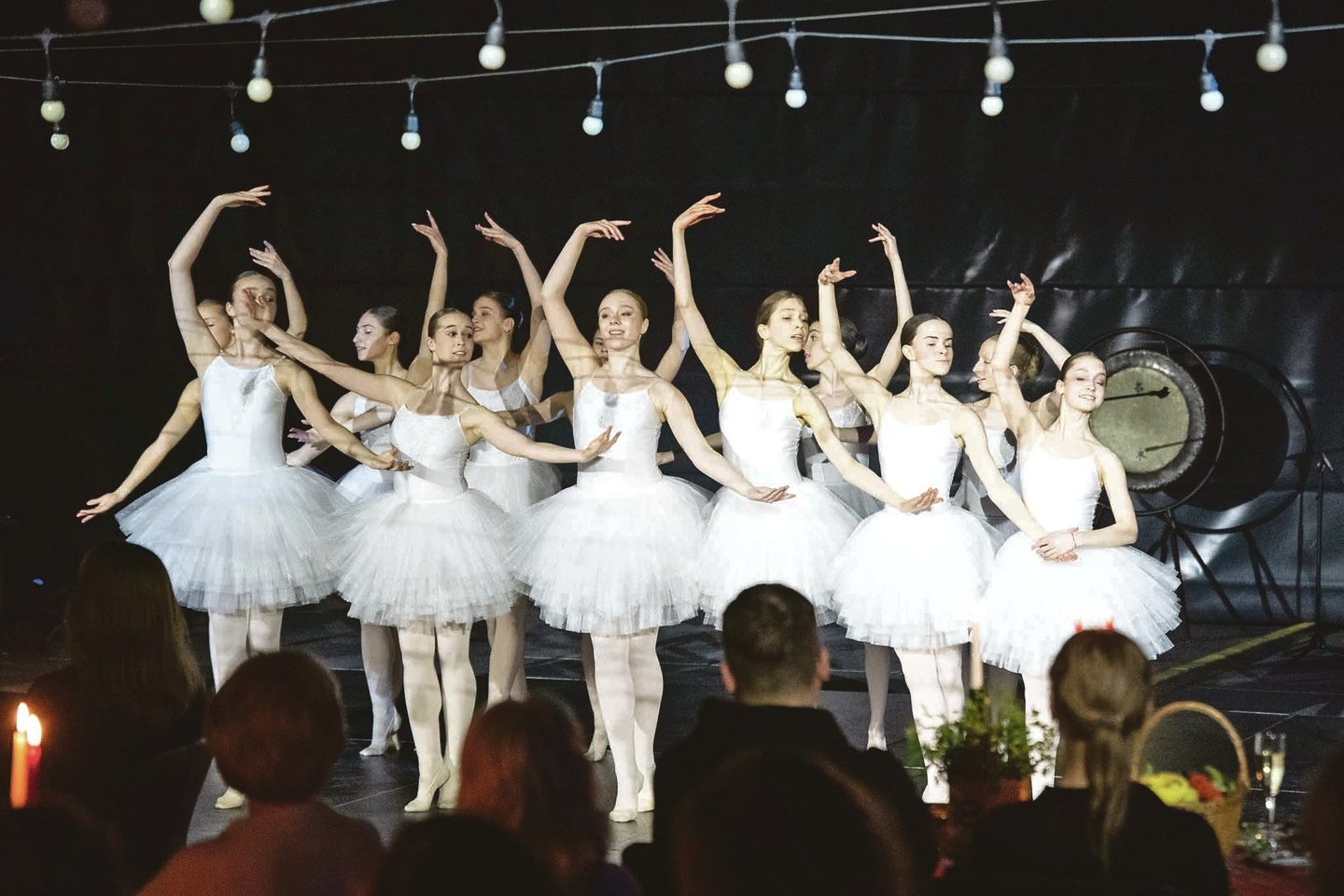 Scenoje pasirodė ir baltai apsirengusios baleto artisto Nerijaus Juškos šokių mokyklos auklėtinės.
