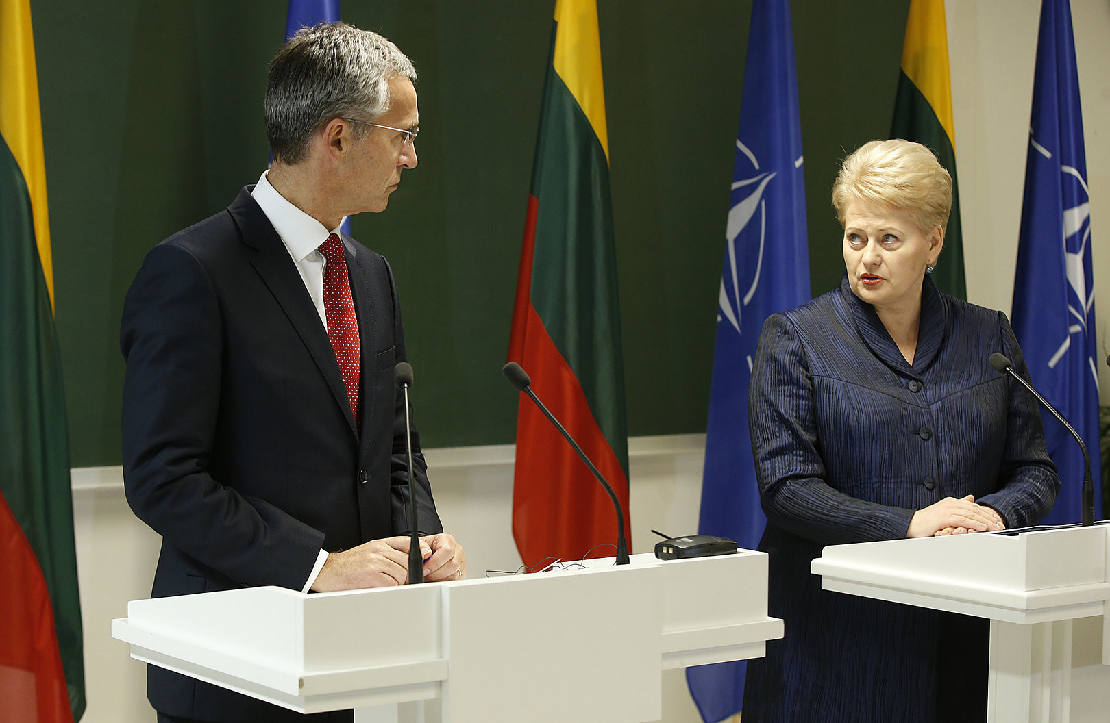 NATO generalinio sekretoriaus J. Stoltenbergo ir D.Grybauskaitės spaudos konferencijos metu Lietuvos prezidentė pareiškė, jog Rusija - tarptautinio terorizmo požymių turinti valstybė.