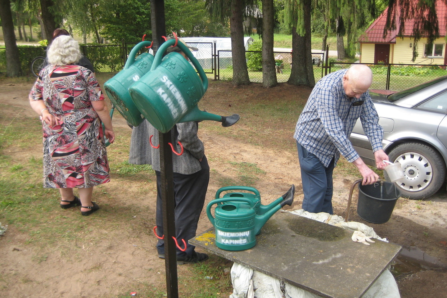 kapines atvykstantys žmonės.