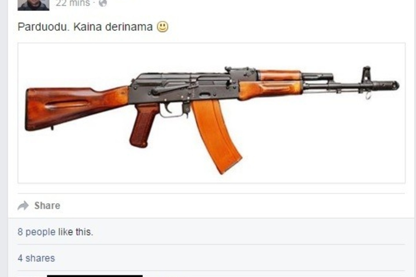 Sukurtame netikrame I.Molotkovo „Facebook“ profilyje skelbiama, kad jis parduoda automatą AK-47.