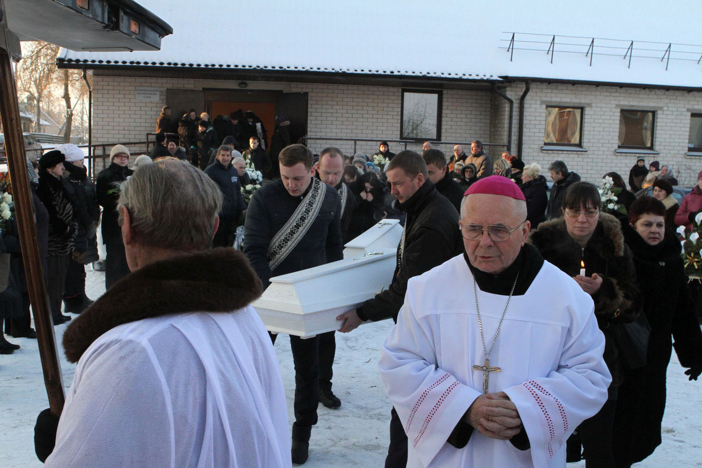 Atsisveikinimas vyko Panoterių (Jonavos r.) bendruomenės namuose. Į paskutinę kelionę dvejų berniuką ir keturių mėnesių mergytę išlydėjo minios žmonių.