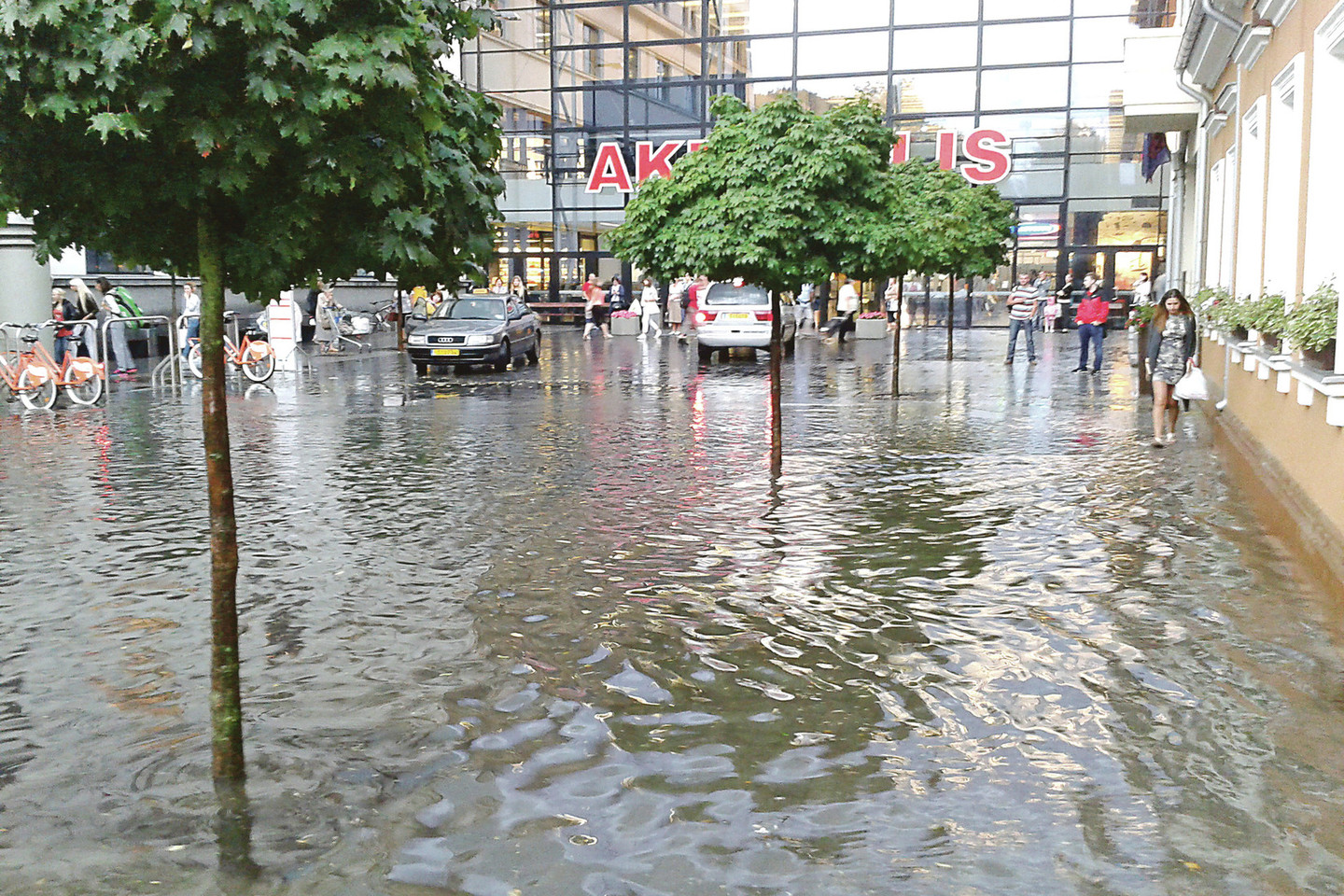 Pirmadienį praūžusi audra per ketvirtį valandos pakeitė miesto veidą – vanduo veržėsi visur: ir atokiuose rajonuose, ir centrinėse gatvėse.