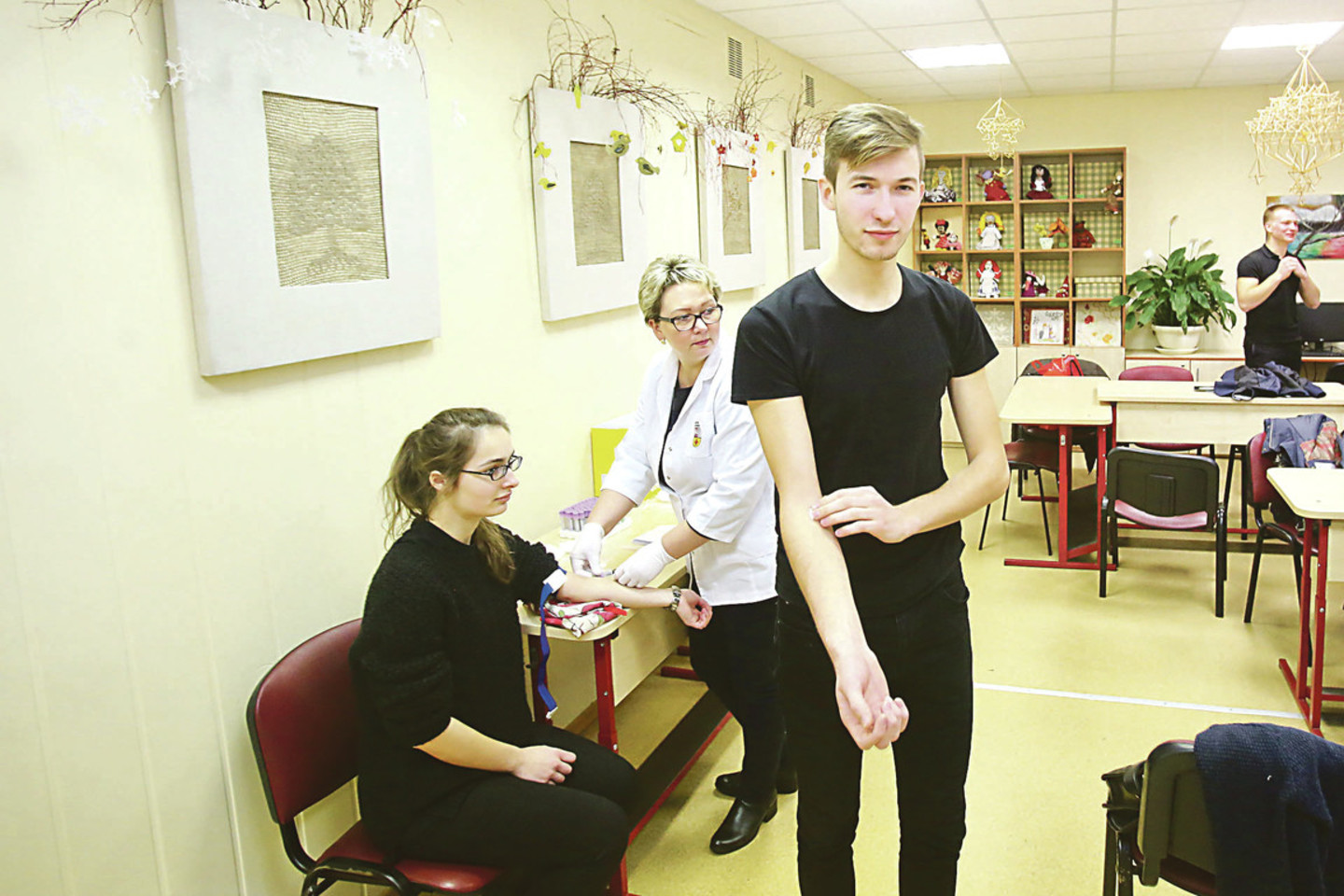 Užpildę anketas kauniečiai abiturientai vienoje iš klasių davė kraujo, kurį ištyrus moksleiviai bus įtraukti į pasaulinį negiminingų kaulų čiulpų donorų registrą.