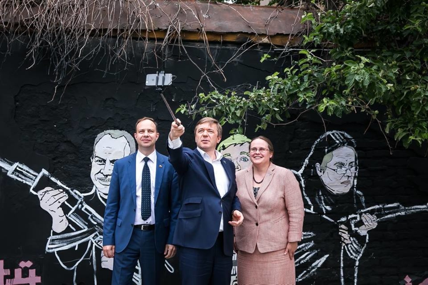 Politikas pasidalijo ir nuotrauka padaryta prie restorano „Keulė Rūkė“ sienos, ant kurios jau puikuojasi jo, sveikatos apsaugos ministro Aurelijaus Verygos bei Agnės Širinskienės atvaizdai.