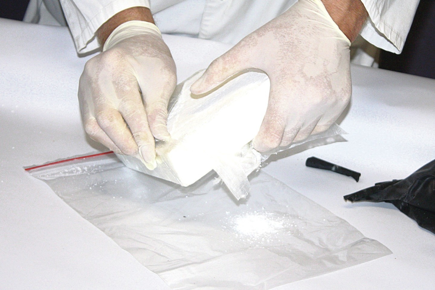 Pragręžus vieną įrenginių, ant grąžto liko baltos spalvos miltelių, o pirminis narkotikų aptikimo testas parodė, jog tai greičiausiai kokainas.