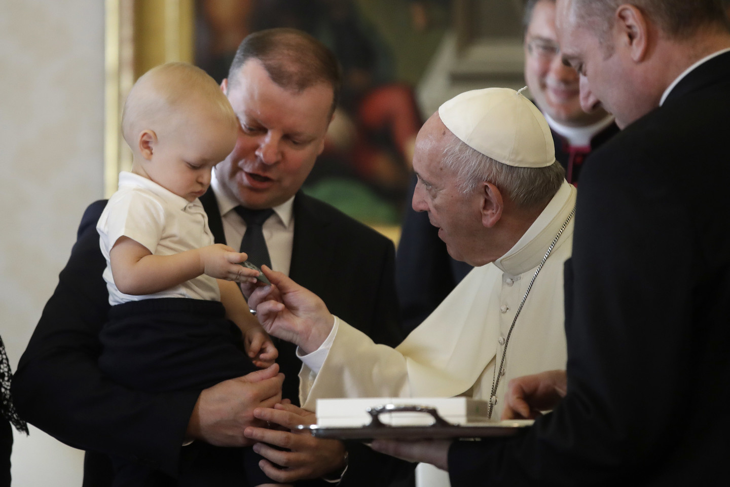 Katalikų Bažnyčios vadovas priėmė ne tik su S.Skvernelį bet ir jo šeimos narius - žmoną Silviją, dukrą Eglę ir sūnų Tadą.