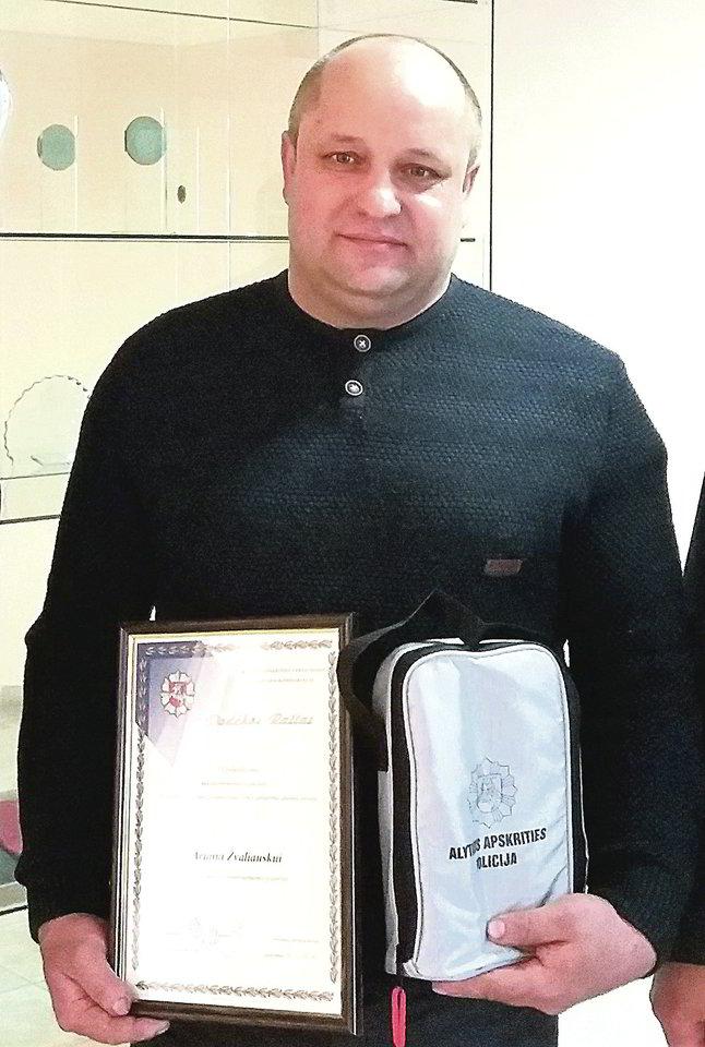 Pilietiškas alytiškis Arūnas Žvaliauskas (nuotr.) nusipelnė apskrities vyriausiojo policijos komisariato viršininko Alvydo Jurgelevičiaus padėkos ir dovanos už tai, kad pranešė apie mieste pavojingai važinėjantį automobilį, kurį vairavo sunkiai apgirtęs (2,97 promilės) vyriškis.