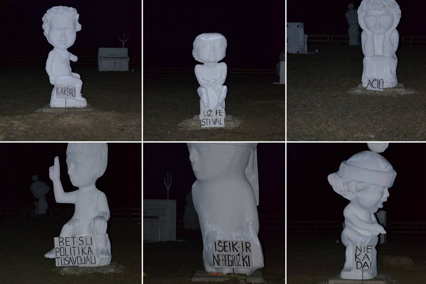 Iš aktyvistų sudėliotų plakatų R.Karbauskiui pasiųsta žinutė: „Karbau, už knygas vaikams ir spektaklius, už festivalį ačiū. Bet su savo politika jau užknisai. Prašau, išeik ir nebegrįžki niekada!”