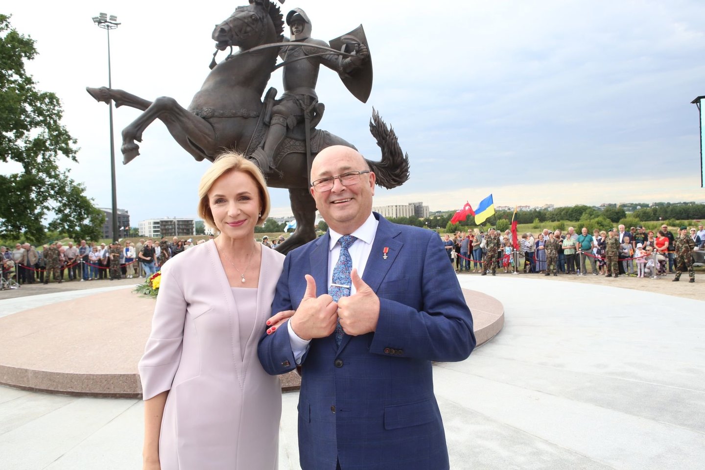„Vyčio paramos fondo“ direktoriaus pavaduotojas Vilius Kavaliauskas dėkojo V.Pranckiečiui, kuris vienintelis iš šalies vadovų parėmė paminklo idėją, o Kauno meras Visvaldas Matijošaitis padėjo ją paversti tikrove.