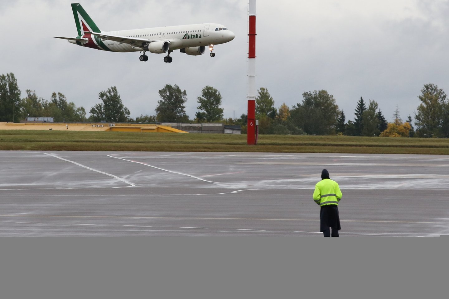Ant „Alitalia“ lėktuvo, kuriuo atskrido popiežius, priekio buvo matyti dvi vėliavėlės: Šventojo Sosto bei Lietuvos.