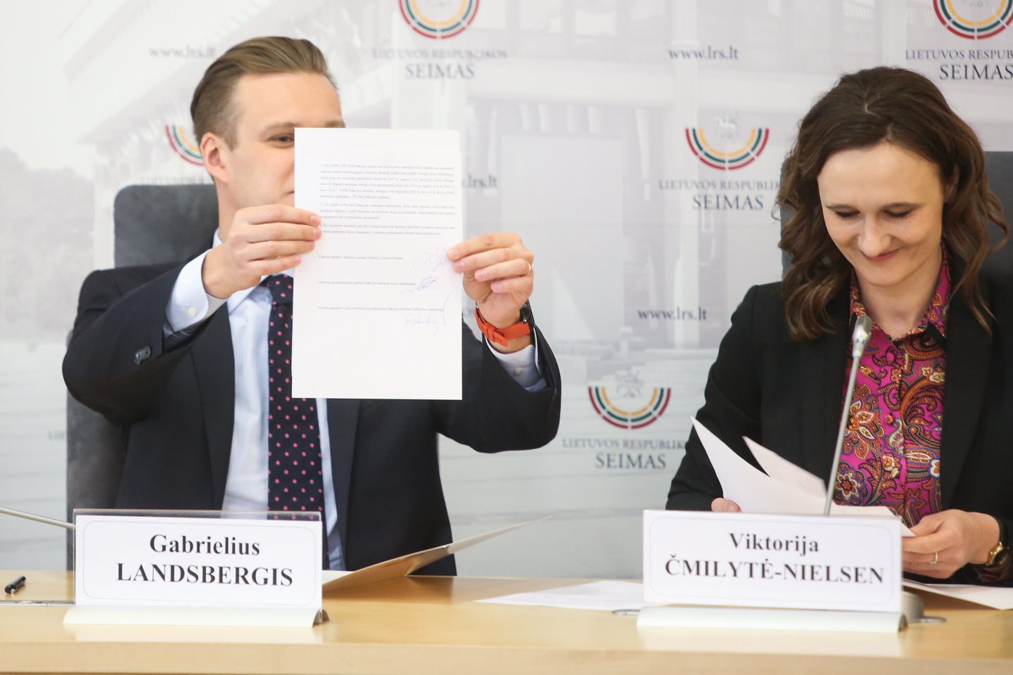 „Šiuo sprendimu siekiame vienytis“, – spaudos konferencijoje sakė naujoji opozicijos lyderė V.Čmilytė-Nielsen.