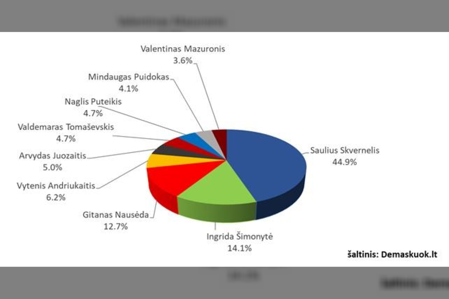 Premjeras sulaukė 3 kartus daugiau dėmesio nei antrojoje vietoje likusi I.Šimonytė. S.Skvernelio paminėjimai rusakalbėje žiniasklaidoje sudarė beveik pusę komunikacijos apie visus kandidatus, tai yra 44,9 proc.