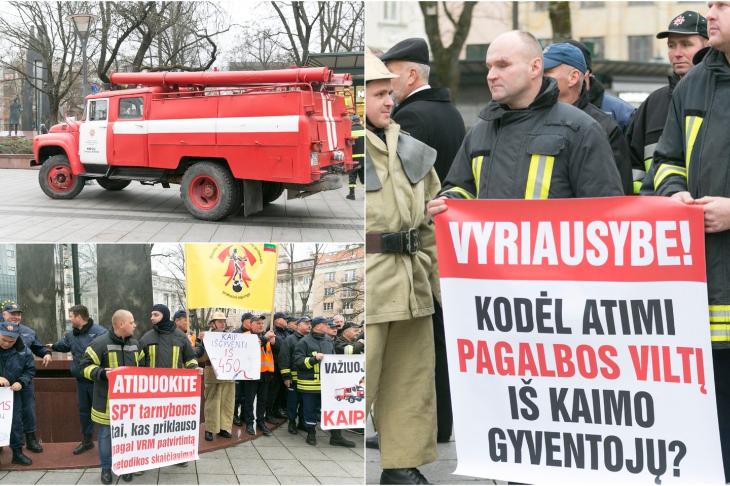 „Gėda, gėda, gėda, kad nefinansuoja, kad neužtikrina tinkamo finansavimo ugniagesiams“, – tokiomis skanduotėmis susirinkę gaisrininkai kreipėsi į valdžios atstovus.