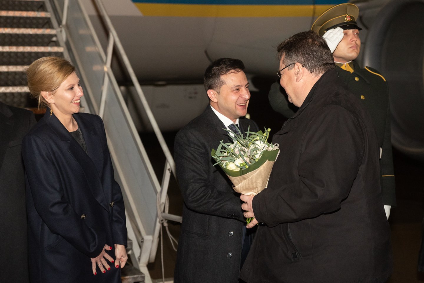 Ukrainos vadovą Vilniaus oro uoste pasitiko užsienio reikalų ministras Linas Linkevičius, BNS patvirtino ministro atstovė Rasa Jakilaitienė.