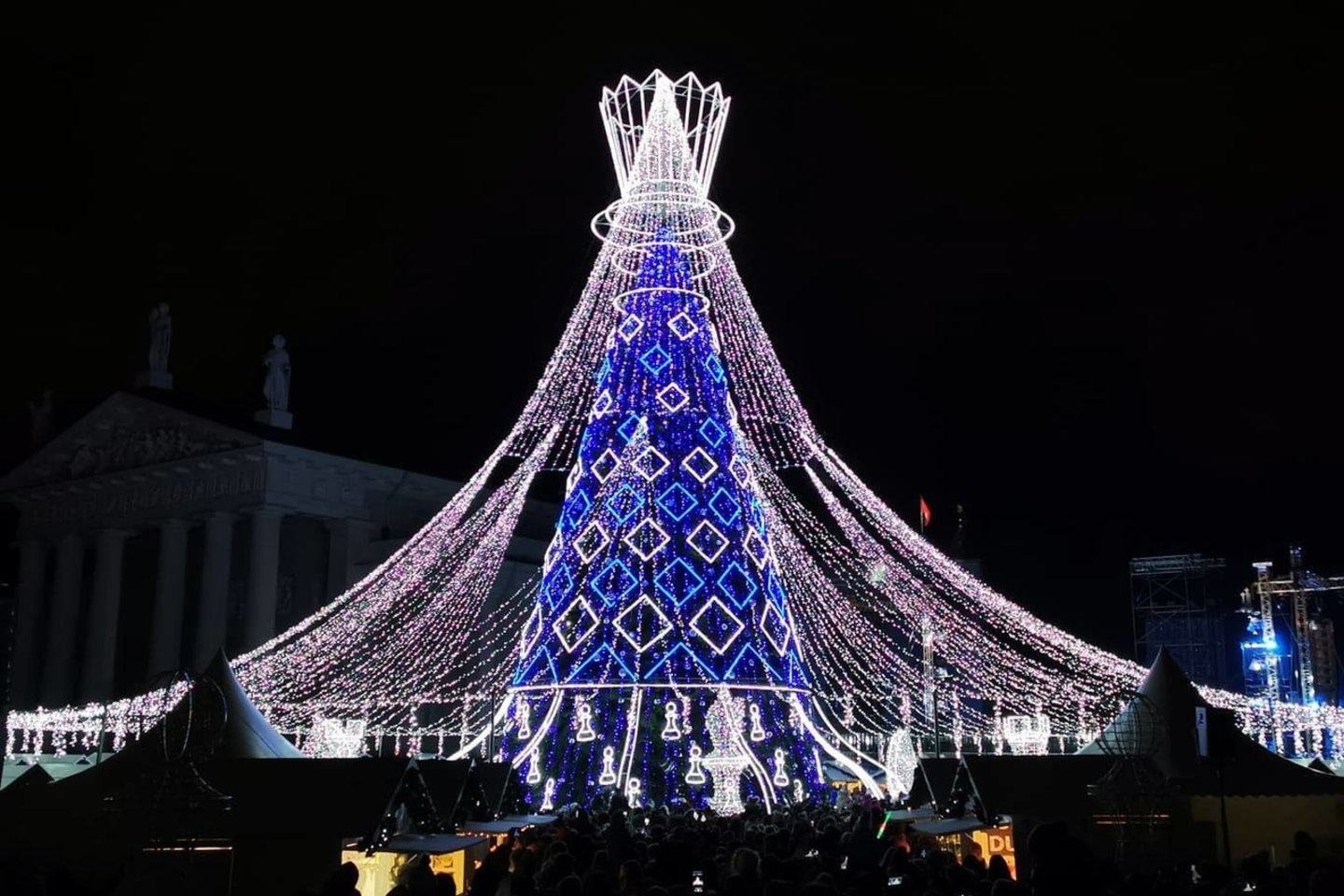 Į Europos akiratį vis pakliūdavusi sostinės eglė vėl įžiebta