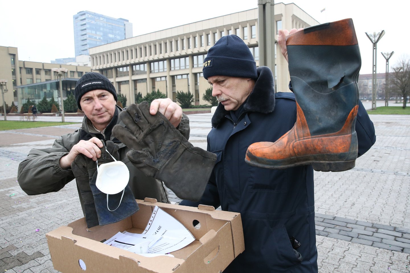 Baigę suplanuotą akciją, protesto dalyviai persikėlė į Seimą, kur šiuo metu svarstomas biudžetas. Į Seimą jie ėjo nešini dovanomis: suplyšusiais batais, suplyšusiomis pirštinėmis, statyboms skirtais respiratoriais. Būtent tokiomis priemonėmis, pasak akcijos dalyvių, buvo aprūpinti gaisrą Alytuje gesinę ugniagesiai.