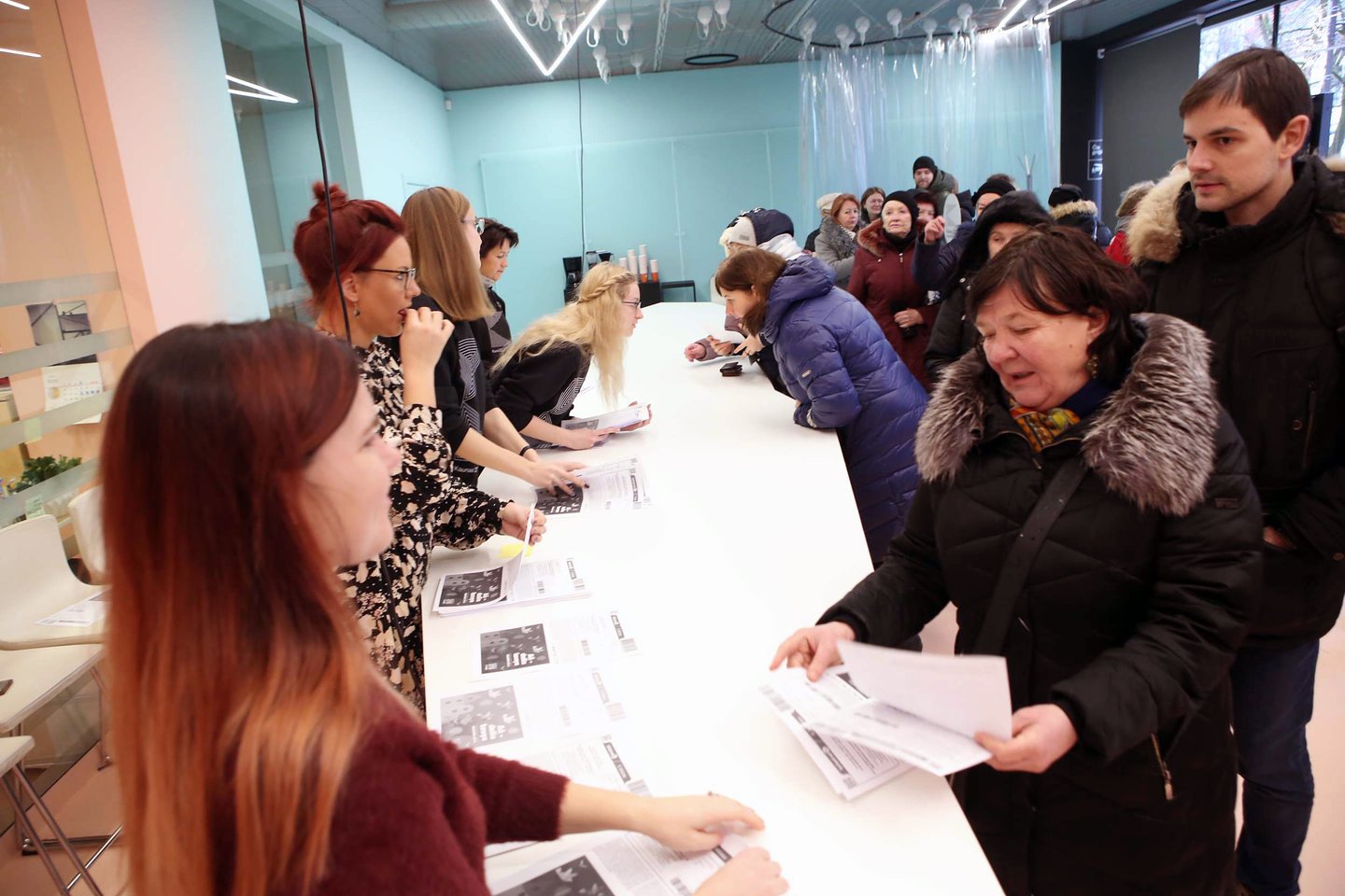 Eilė prie biuro durų pradėjo formuotis likus dar porai valandų iki biuro atidarymo, o netrukus jose stovėjo keli šimtai žmonių. Prie durų budėjo policijos pareigūnai.