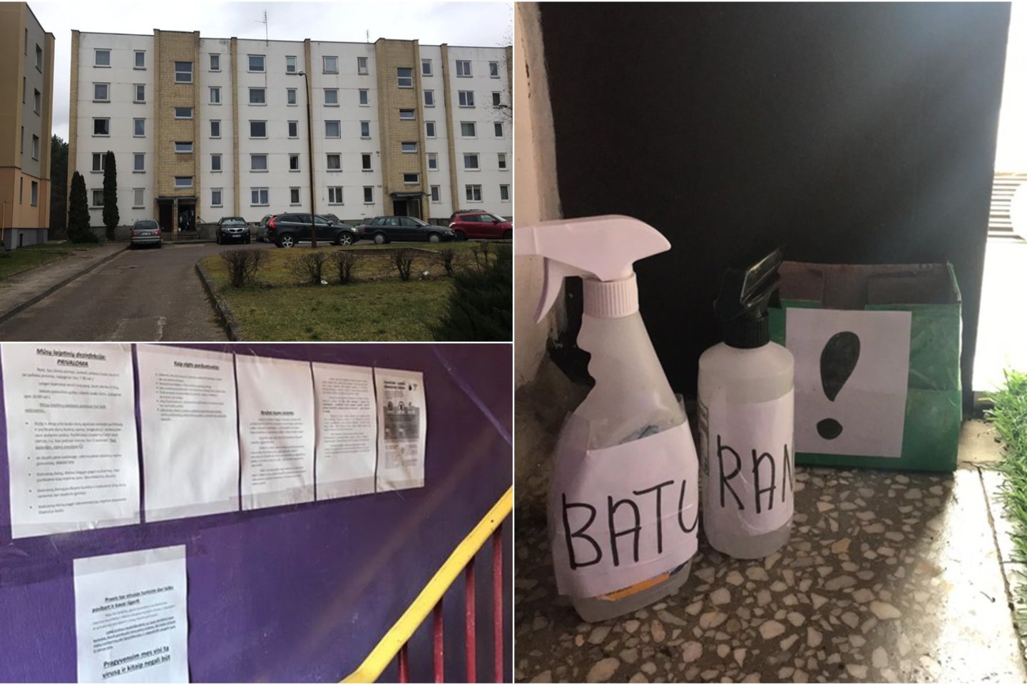 Kiekvienoje laiptinėje, prie įėjimo durų, padėtas purškiklis su dezinfekciniu skysčiu, kuriuo, atėję iš lauko, gyventojai apsipurškia avalynės padus, lauko durų užraktą, rankeną, rankas.