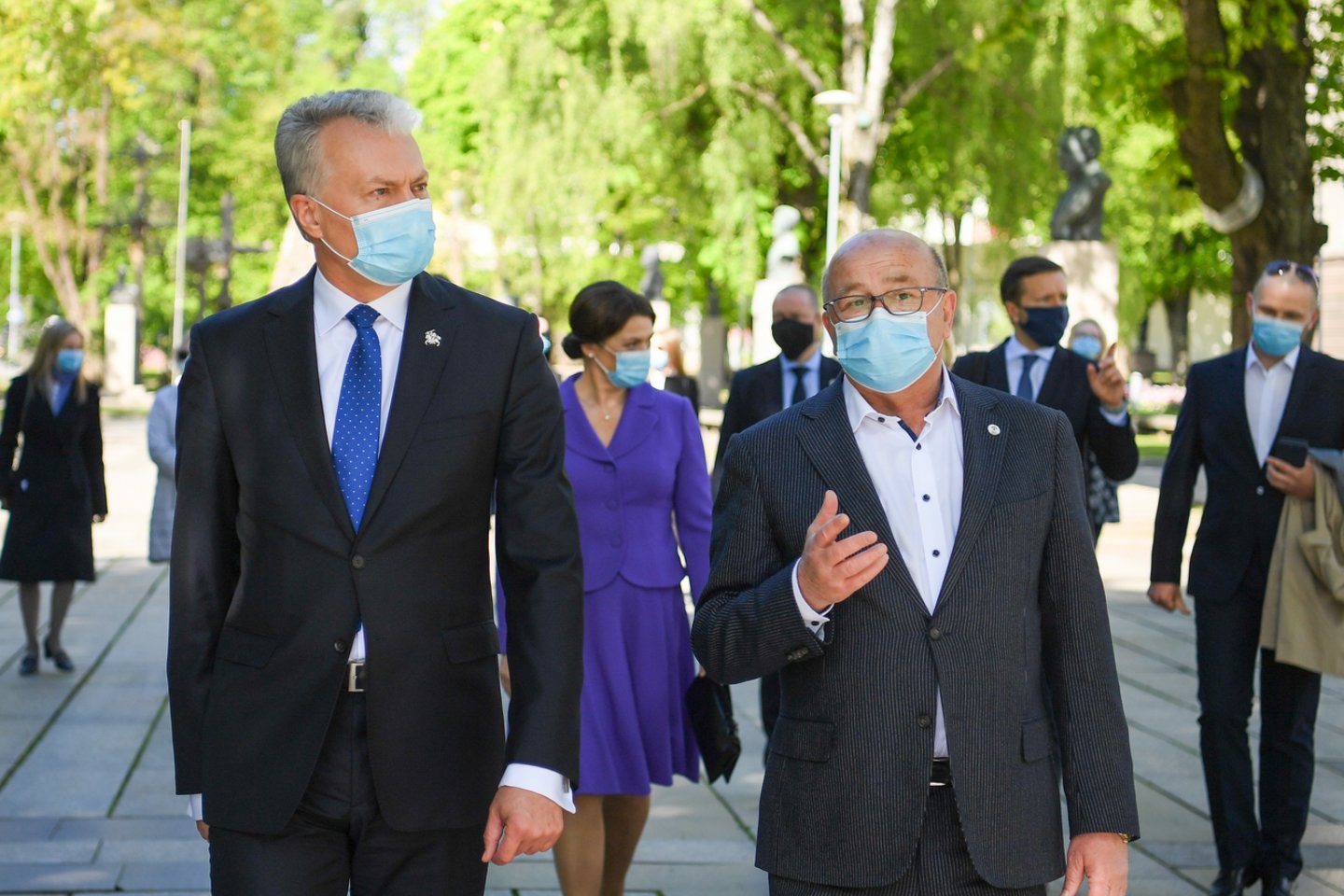 Kaip informavo Prezidentūra, G. Nausėda su meru Visvaldu Matijošaičiu miesto kultūrines ir kitas aktualijas aptarė vaikštinėdami atsinaujinusia Laisvės alėja.