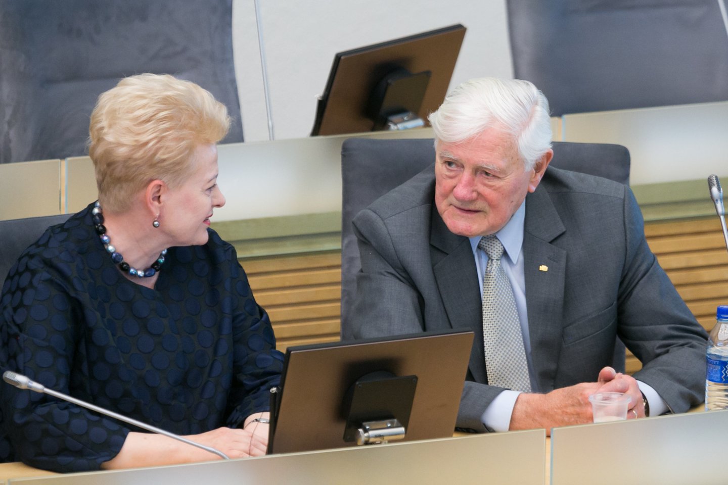 Paklaustas, ko palinkėtų G.Nausėdai, V.Adamkus nedaugžodžiavo.