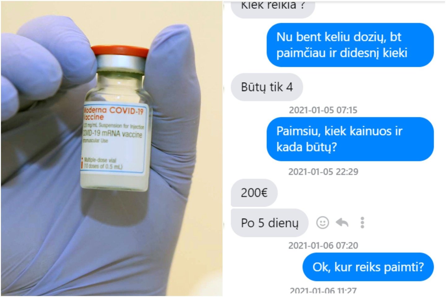 Tiesa, toliau pardavėja pokalbio nebetęsė ir praėjus žadėtam penkių dienų terminui daugiau į žinutes neatsakinėjo. Įdomu tai, kad pokalbis su tariamam pardavėja vyko jau po pirmojo straipsnio apie jos siūlomas vakcinas pasirodymo internete.