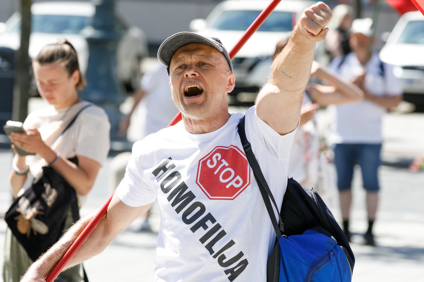 Mitingas prie Vyriausybės neapsiėjo be incidentų. Protestuojantį vyrą teko išvežti policijai. Vilniaus apskrities vyriausiojo policijos komisariato 3-iojo policijos komisariato pareigūnai pranešė pradėję ikiteisminį tyrimą dėl kurstymo prieš bet kokios tautos, rasės, etninę, religinę ar kitokią žmonių grupę bei valstybės simbolių išniekinimą.