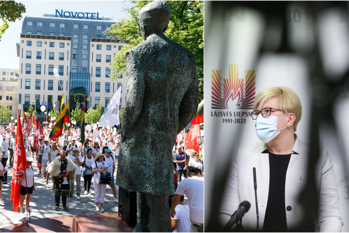 Keli šimtai protestuotojų užtvindė Kudirkos aikštę: dėl vieno dalyvio pradėtas ikiteisminis tyrimas