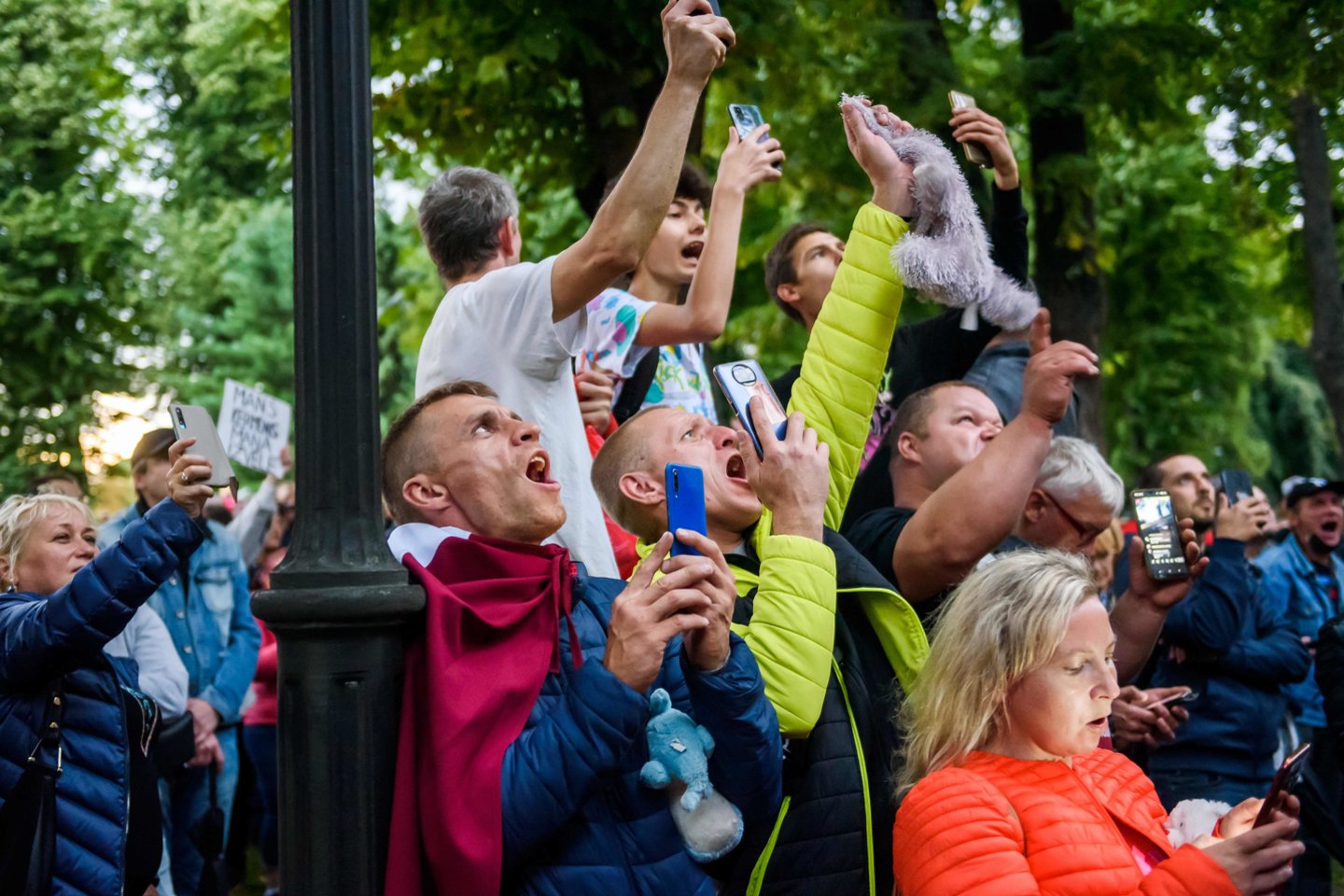 Dauguma protestuotojų nedėvėjo apsauginių kaukių ir nesilaikė saugaus atstumo eitynėse, per kurias jie ėjo pro prezidento ir ministro pirmininko rezidencijas.