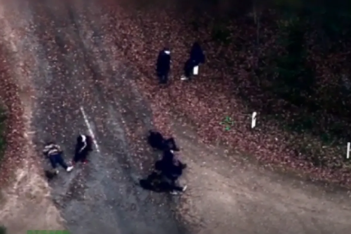 Antroje įrašo dalyje ant kelio matomi migrantai buvo maždaug už 20 metrų nuo Lietuvos sienos. Aišku, jie suprato, kad yra susekti, todėl ten pastoviniavę, pagulinėję ir pailsėję vėliau pasišalino į Baltarusijos gilumą“, – nurodo VSAT atstovai.
