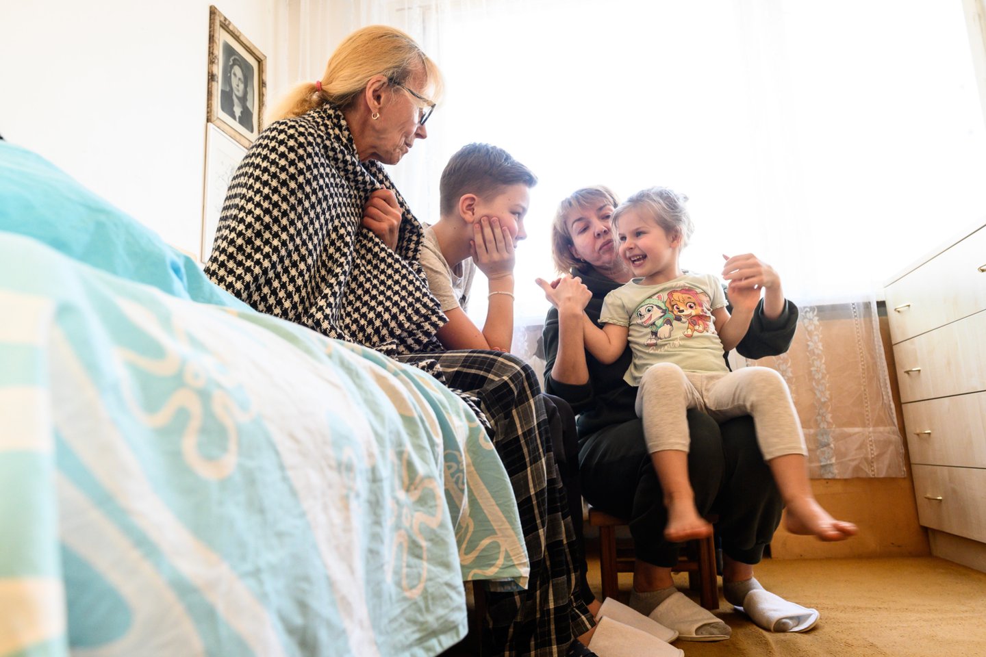 Olena su Volodymyru, motina Natalija, trimete dukra Daryja ir dvylikamečiu sūnumi Volodymyru prisiglaudė Vilniuje. Jiems savo butą užleido viena vilnietė teisininkė.