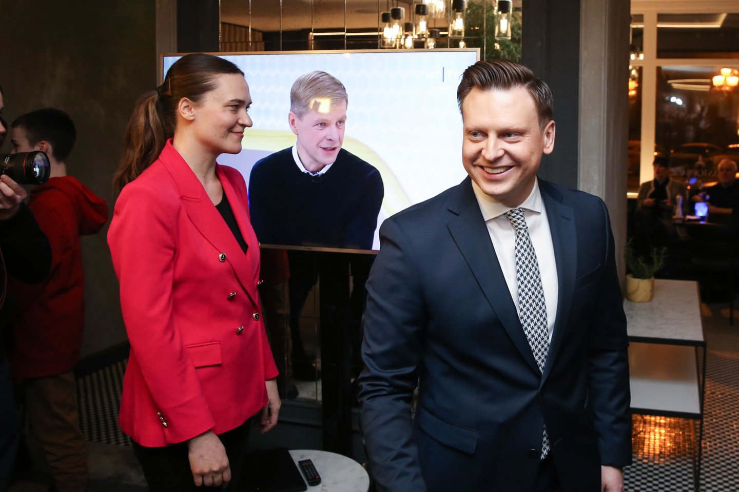 Tiesa, konservatorių partijos pirmininkas Gabrielius Landsbergis rinkimų štabe nepasirodė, nes skrenda į Jungtines Amerikos Valstijas.