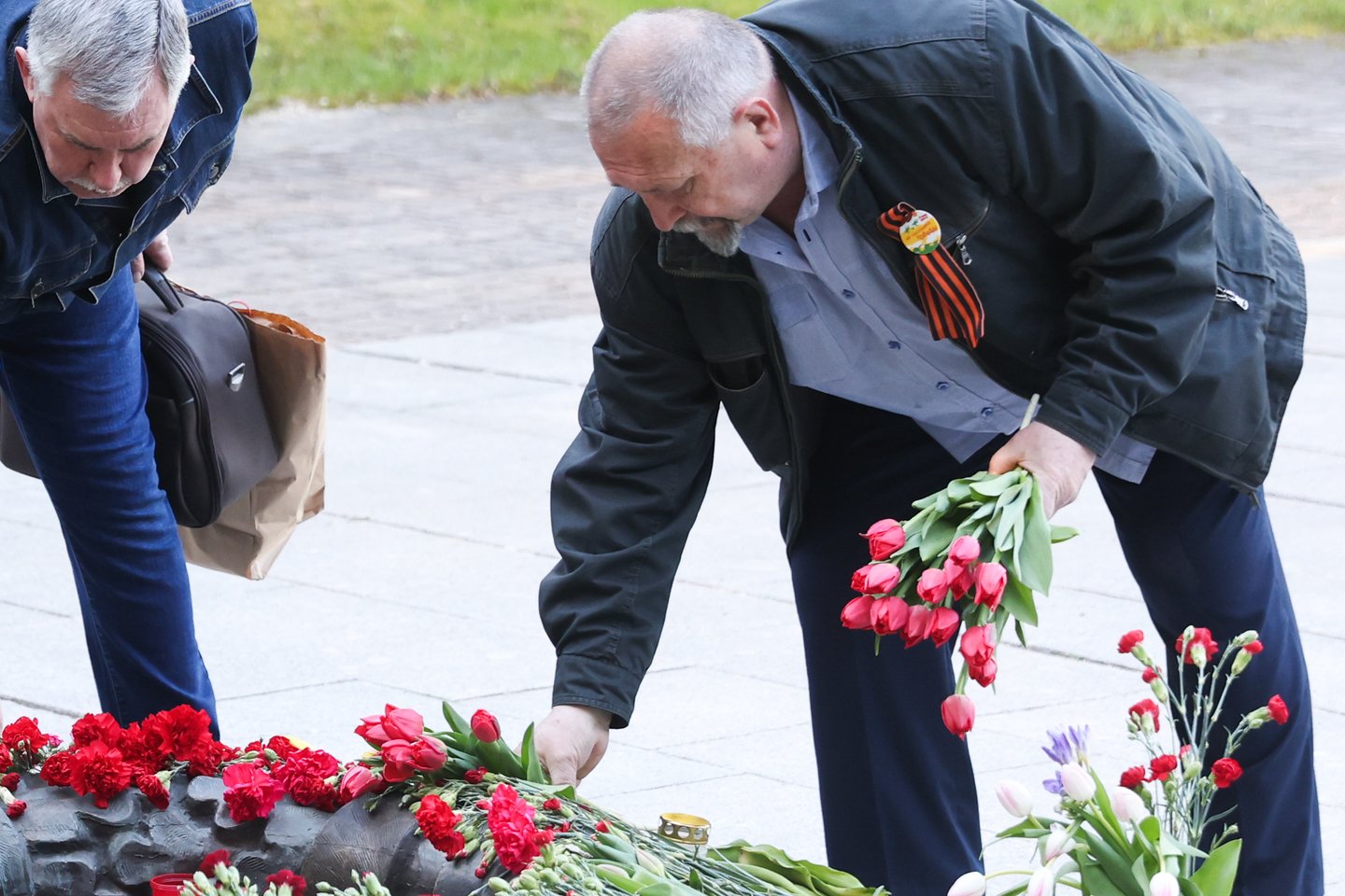 Tiesa, vienas vyriškis į kapines atėjo segėdamas ir Lietuvoje draudžiamą simbolį – Georgijaus juostelę, vadinamąją „koloradkę“. Visgi eidamas pro policijos pareigūnus vyras ją išsisegė ir įsidėjo į kišenę.